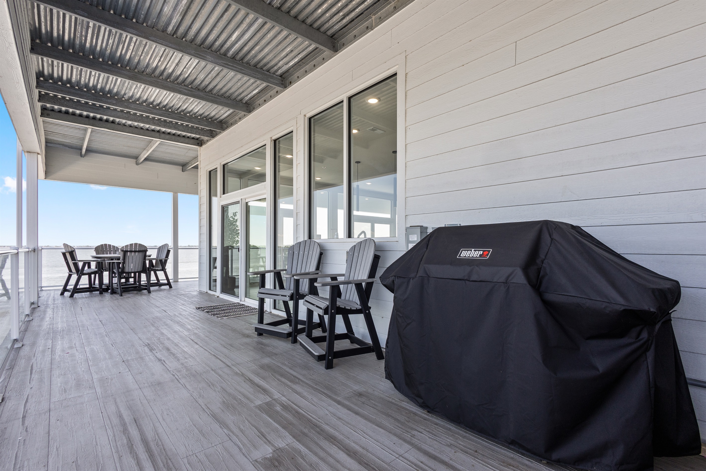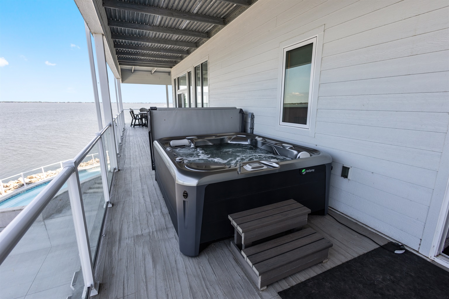 OUTDOOR LIVING: Lake views, outdoor dining area, private hot tub, gas grill